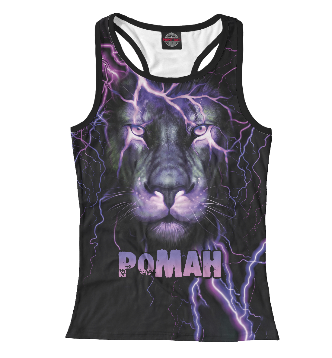 Женская майка-борцовка с принтом «Неоновый лев Роман»