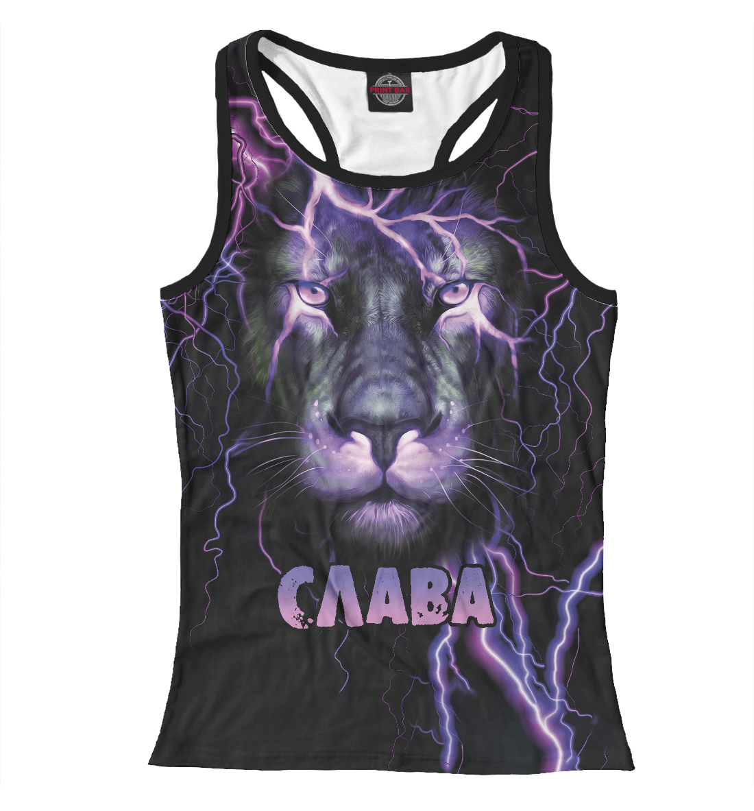 Женская майка-борцовка с принтом «Неоновый лев Слава»