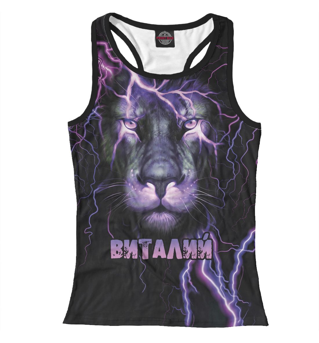 Женская майка-борцовка с принтом «Неоновый лев Виталий»