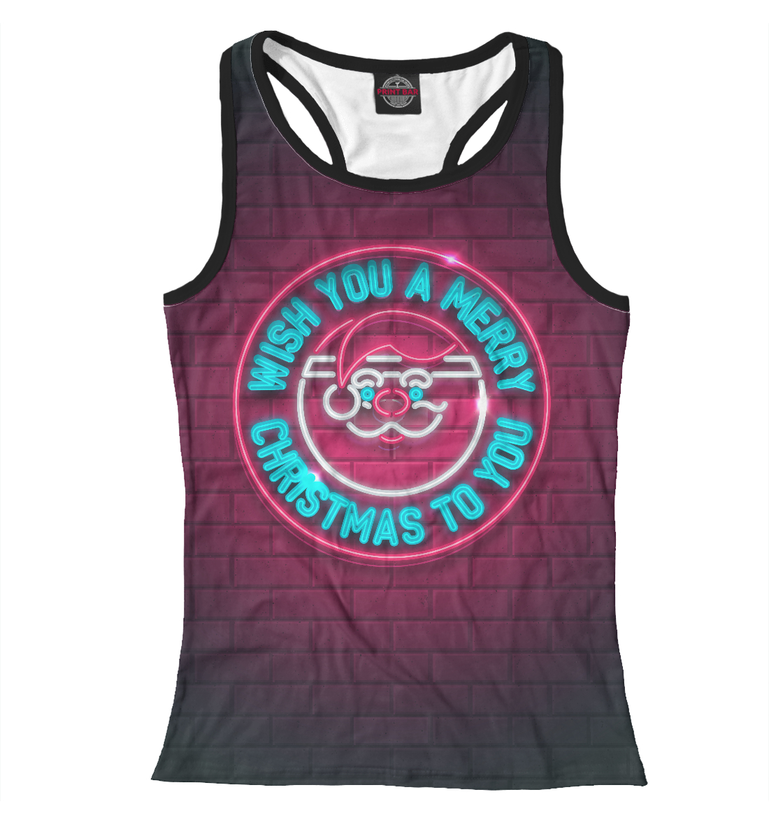 Женская майка-борцовка с принтом «Неоновый Санта»