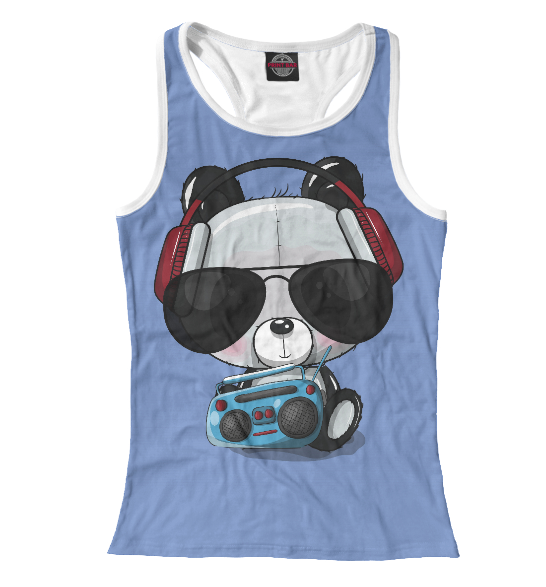 Женская майка-борцовка с принтом «Панда в очках и наушниках»
