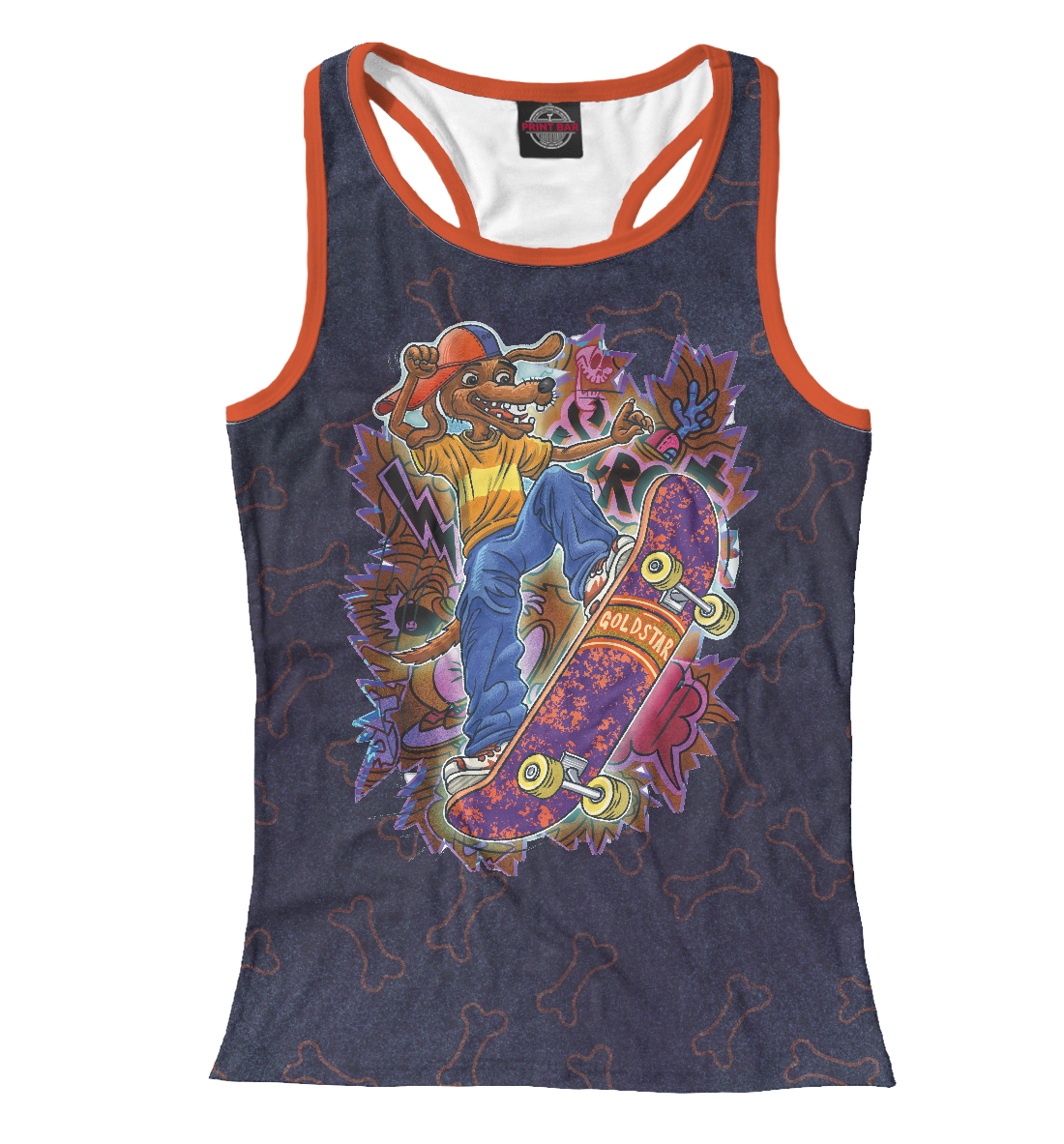 Женская майка-борцовка с принтом «Пес скейтбордист катается на скейте»