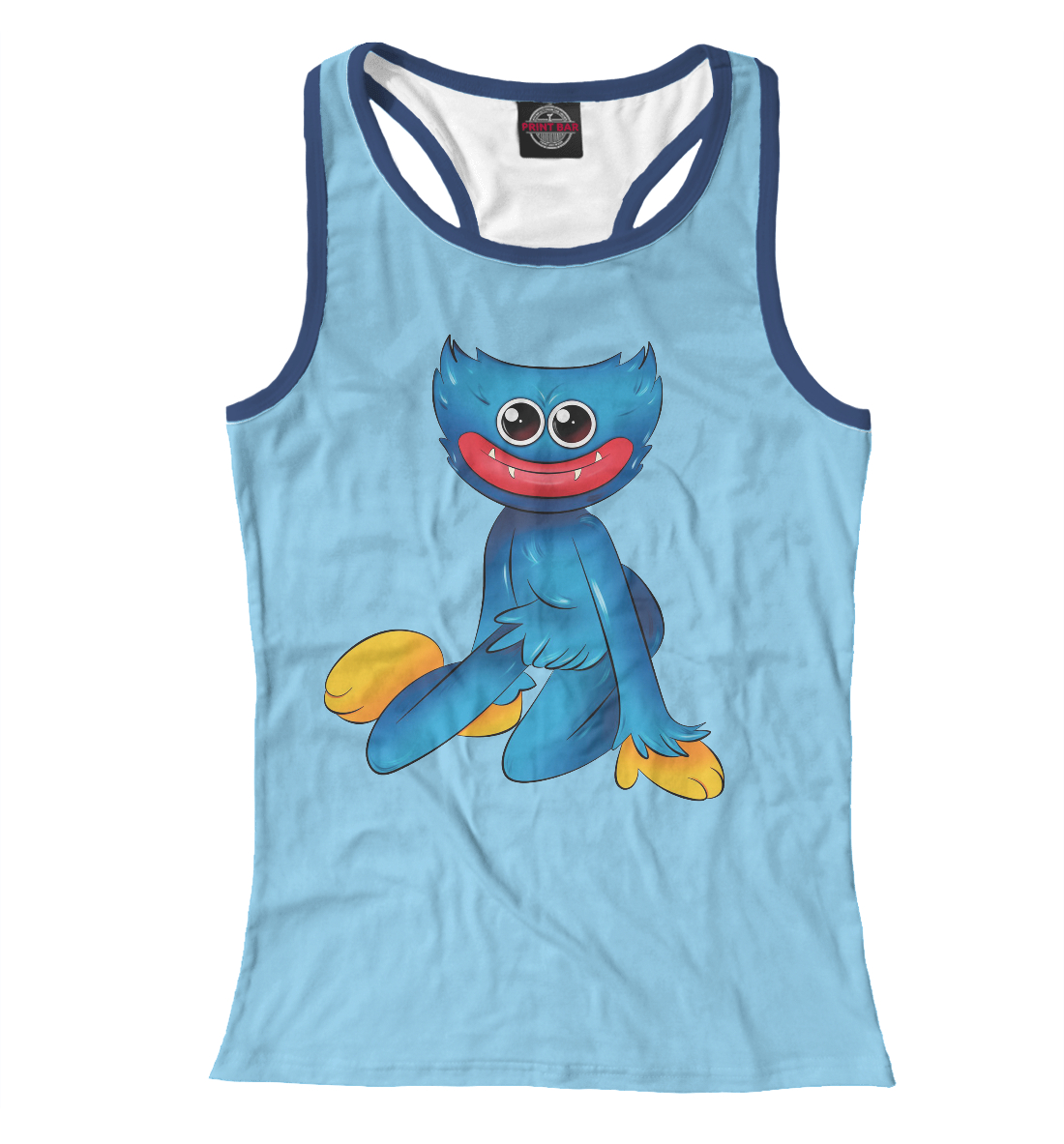 Женская майка-борцовка с принтом «Poppy Playtime Хагги Вагги (голубой фон)»