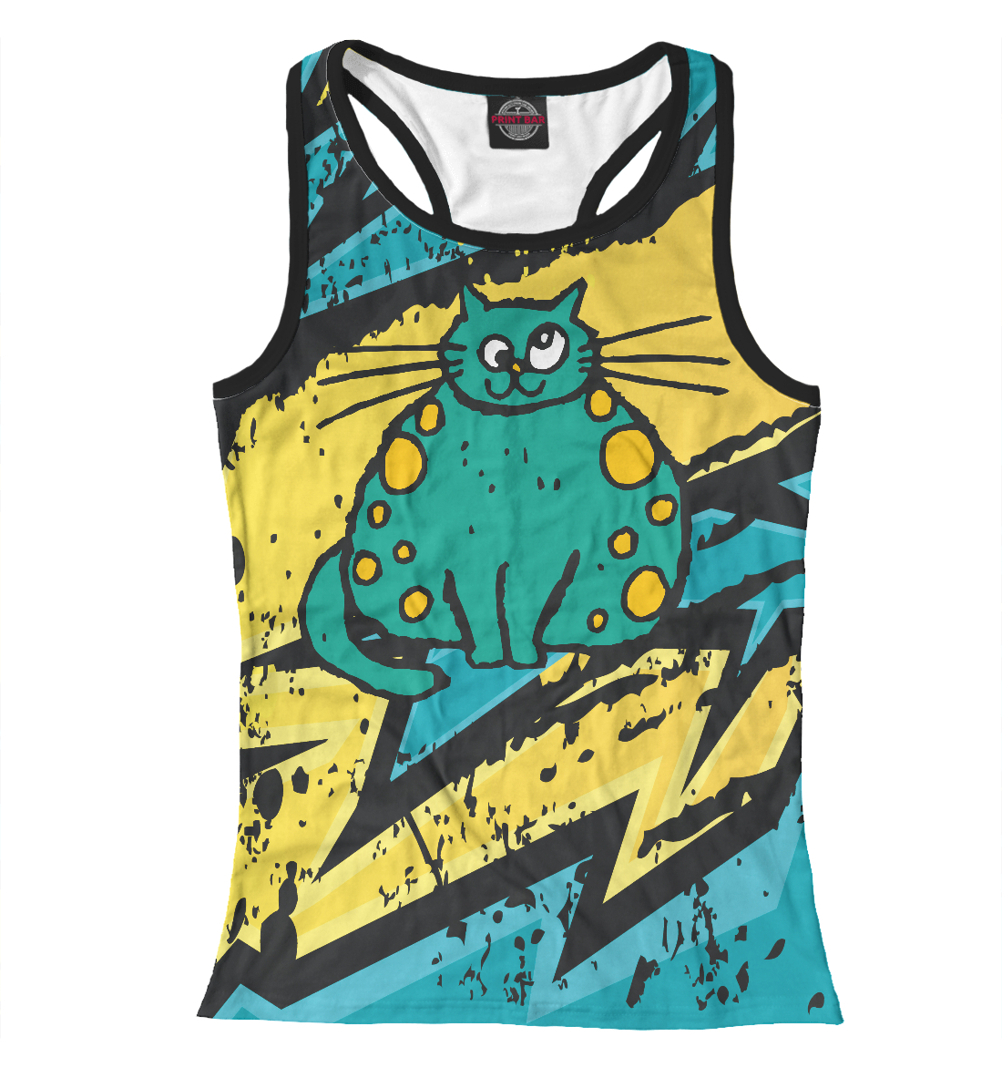 Женская майка-борцовка с принтом «Прикольный зеленый кот»