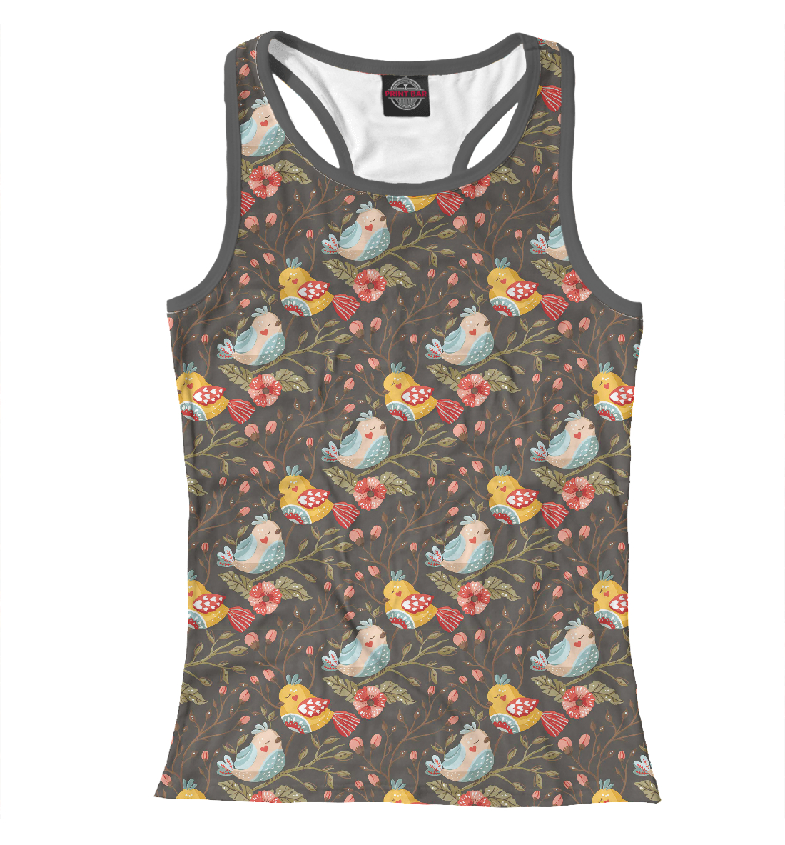 Женская майка-борцовка с принтом «Птички и цветочки»