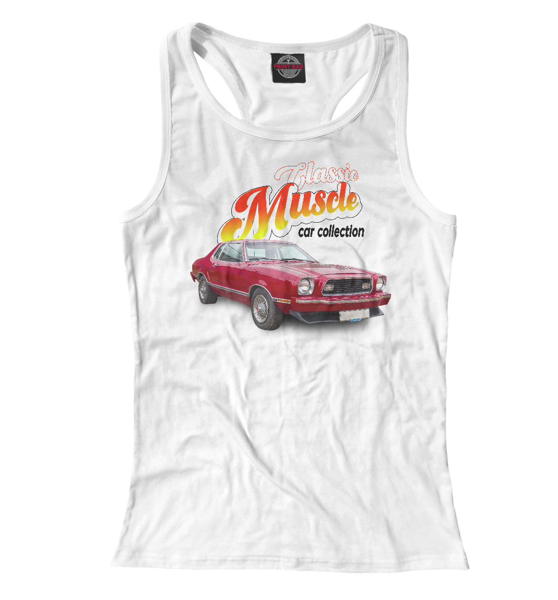Женская майка-борцовка с принтом «Ретро-кар Mustang на белом фоне»