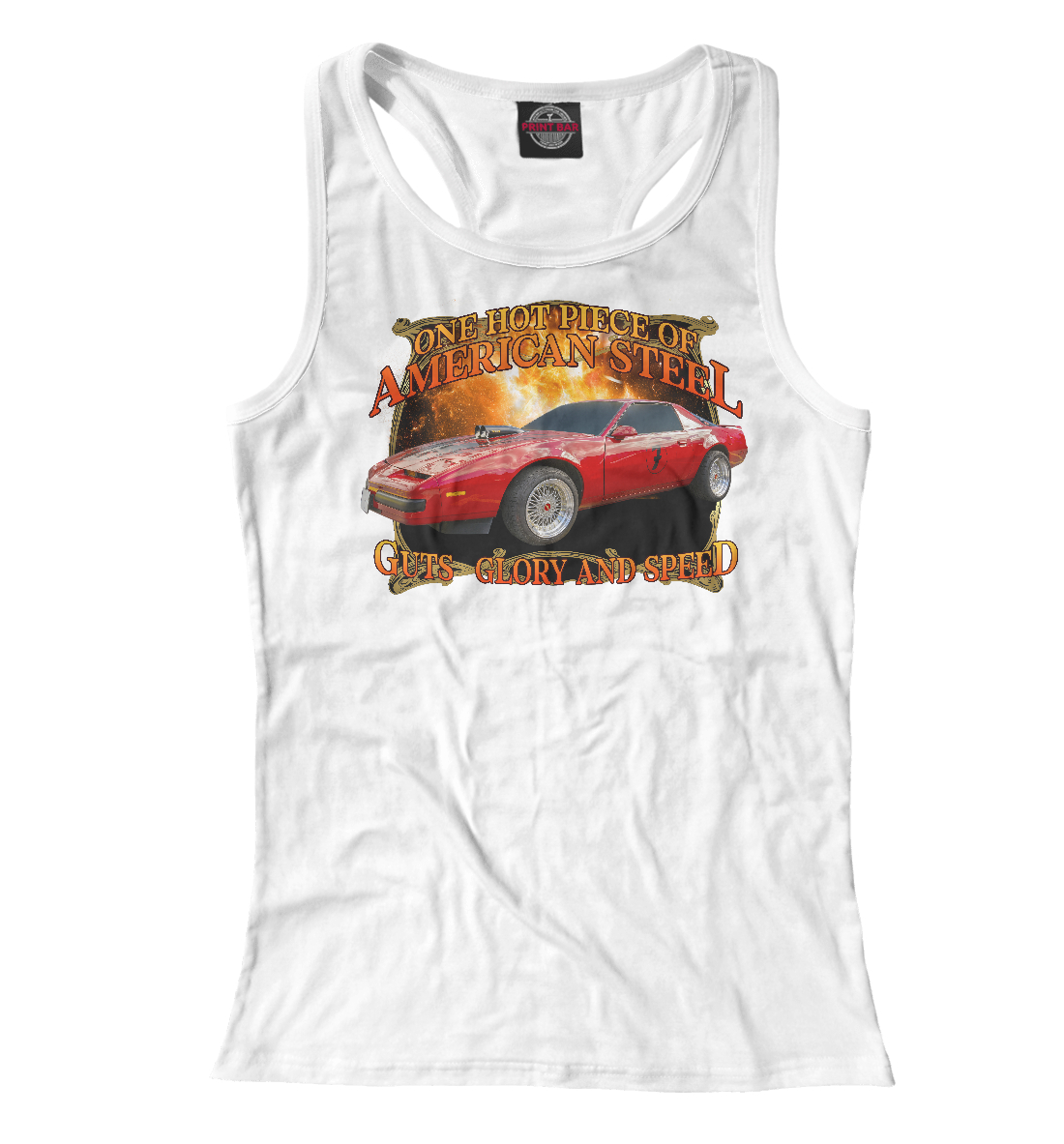 Женская майка-борцовка с принтом «Ретро маслкар Firebird на белом фоне»