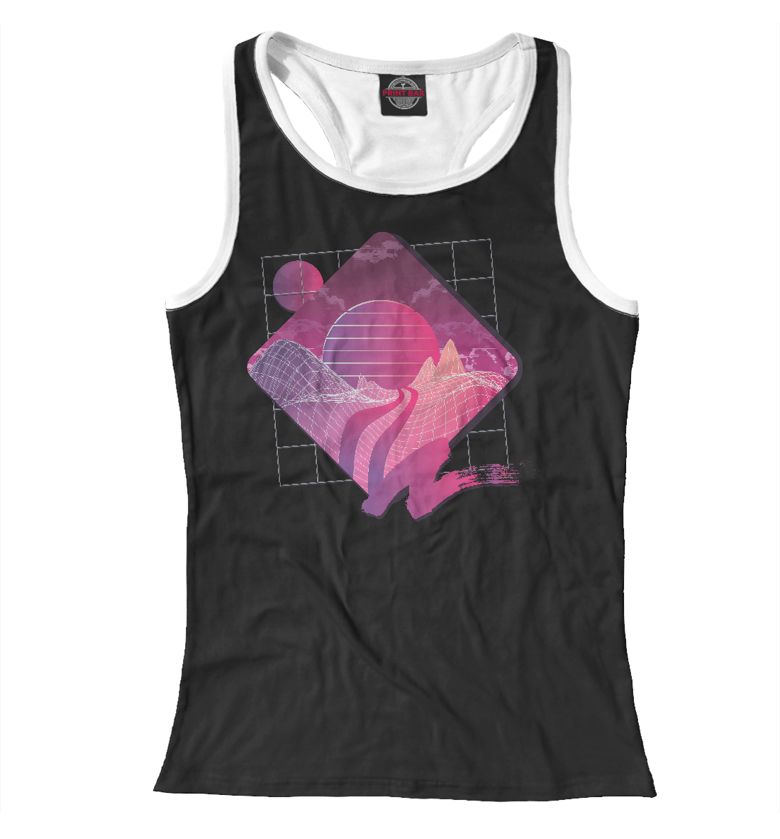 Женская майка-борцовка с принтом «Ретровейв пейзаж»