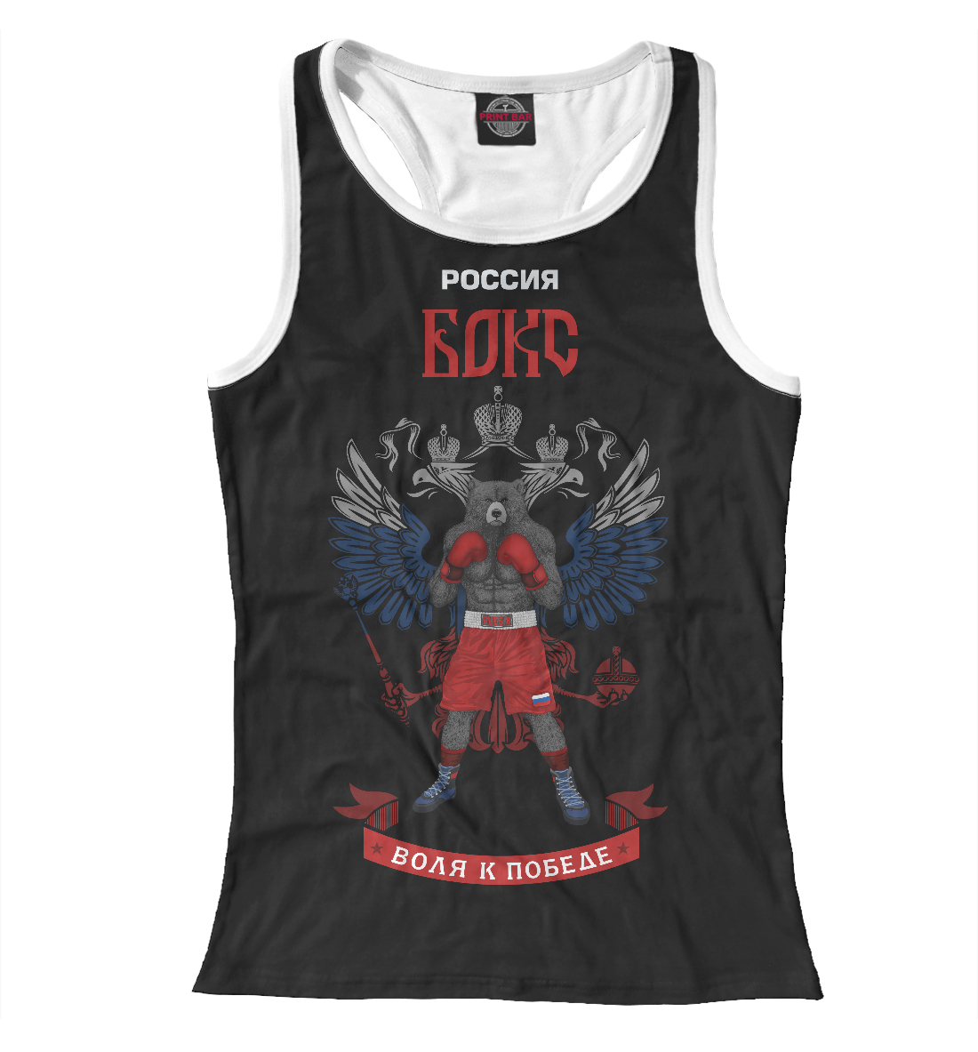 Женская майка-борцовка с принтом «Россия бокс - воля к победе !»