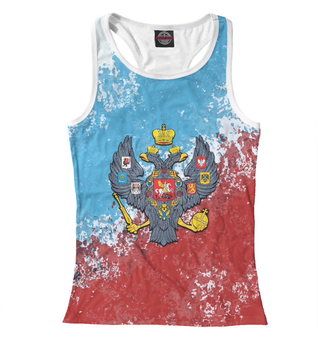Женская майка-борцовка с принтом «Russia триколор герб»