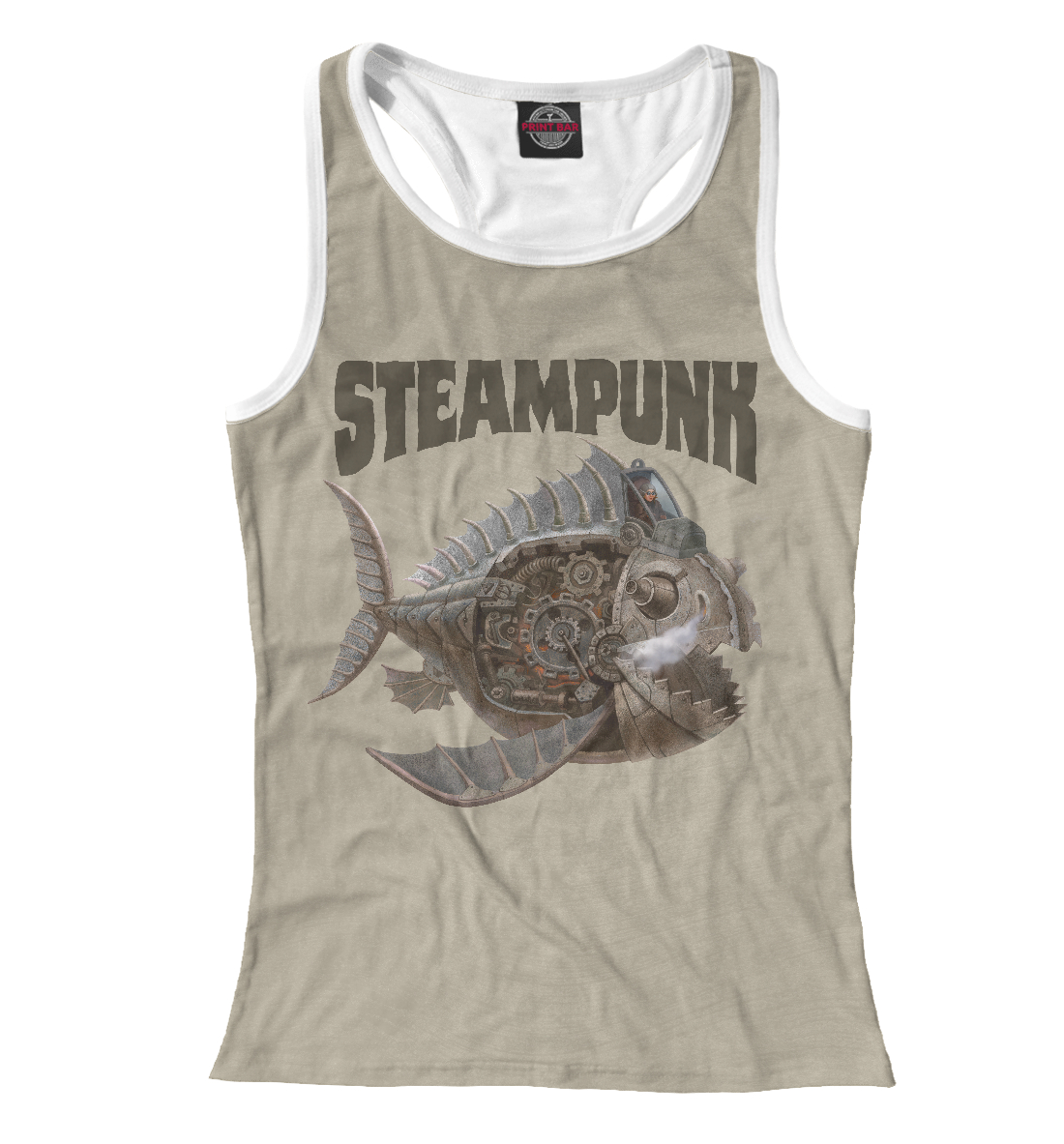 Женская майка-борцовка с принтом «Рыболет стимпанк»