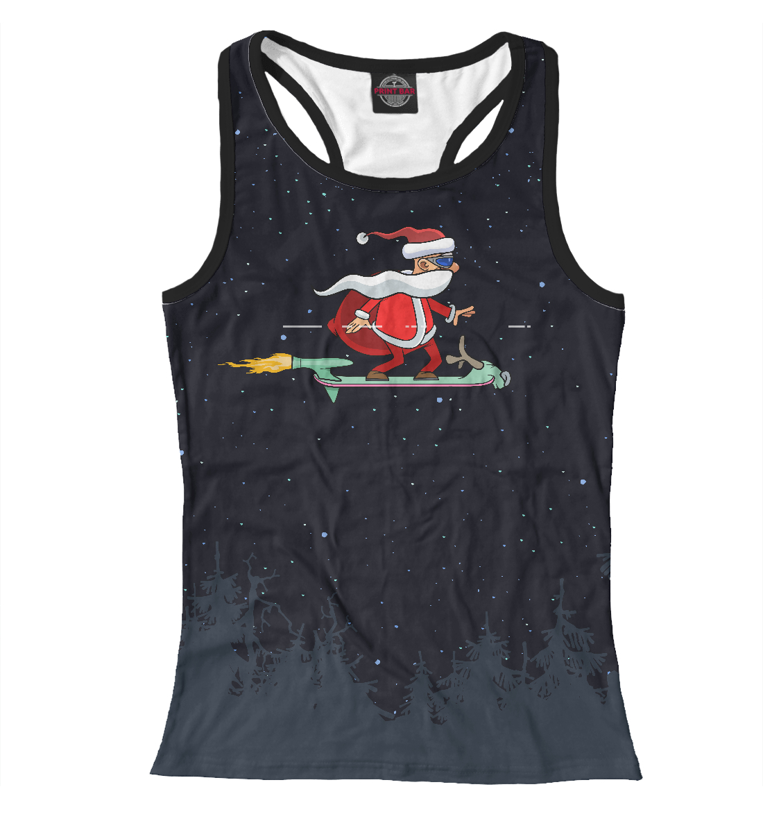 Женская майка-борцовка с принтом «Санта на летающем скейтборде»
