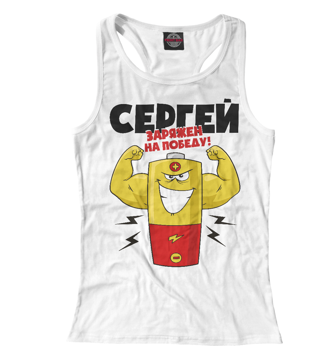 Женская майка-борцовка с принтом «СЕРГЕЙ ЗАРЯЖЕН НА ПОБЕДУ»