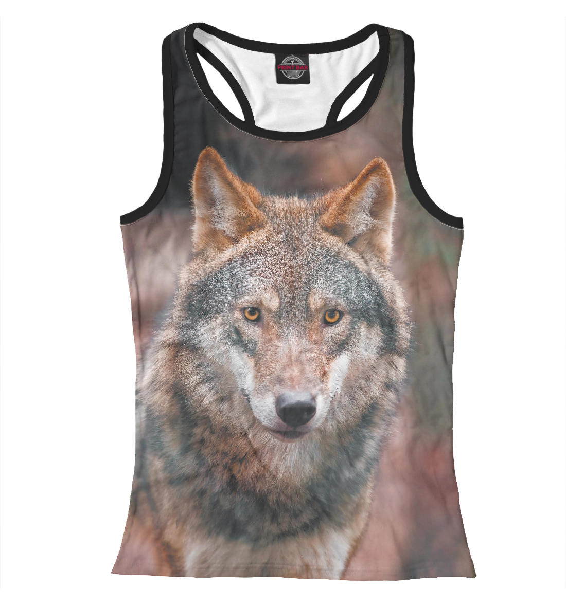Женская майка-борцовка с принтом «Серый волк в лесу»