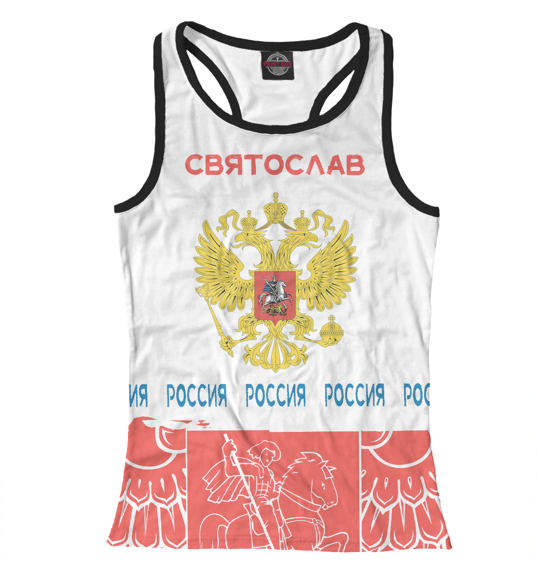 Женская майка-борцовка с принтом «Символика РФ СВЯТОСЛАВ»