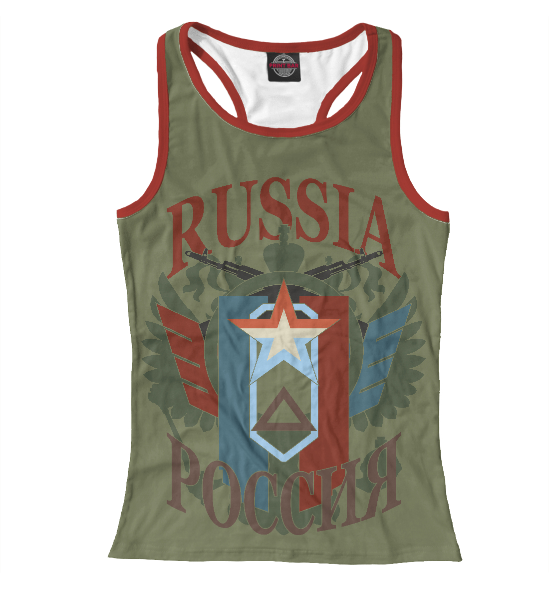 Женская майка-борцовка с принтом «Символы России на оливковом хаки»