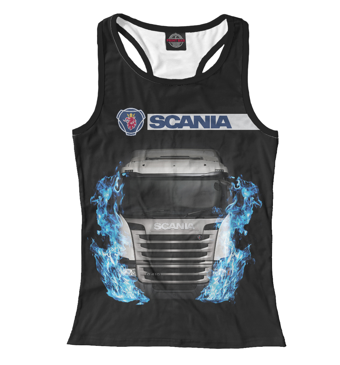 Женская майка-борцовка с принтом «Скания и синий огонь»