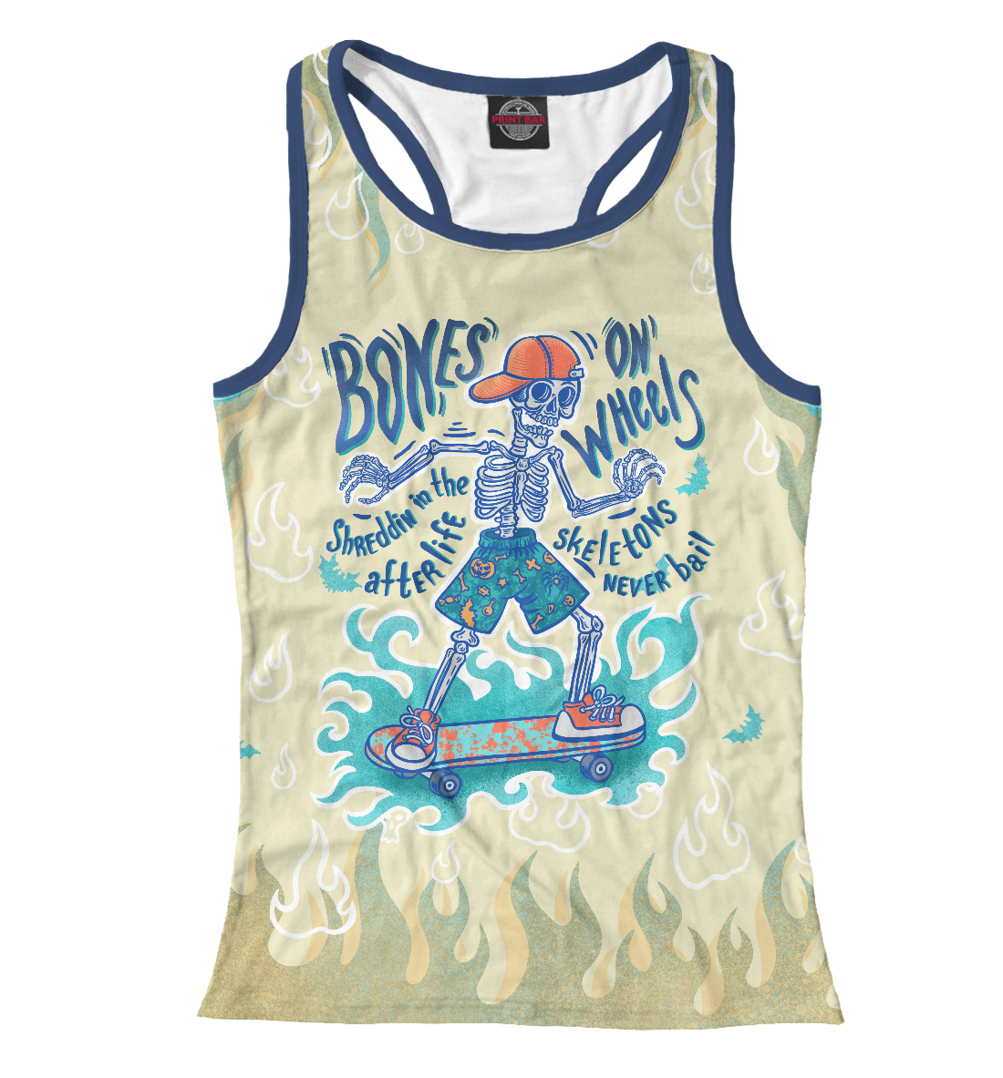 Женская майка-борцовка с принтом «Скелет катается на скейтборде бежевый»
