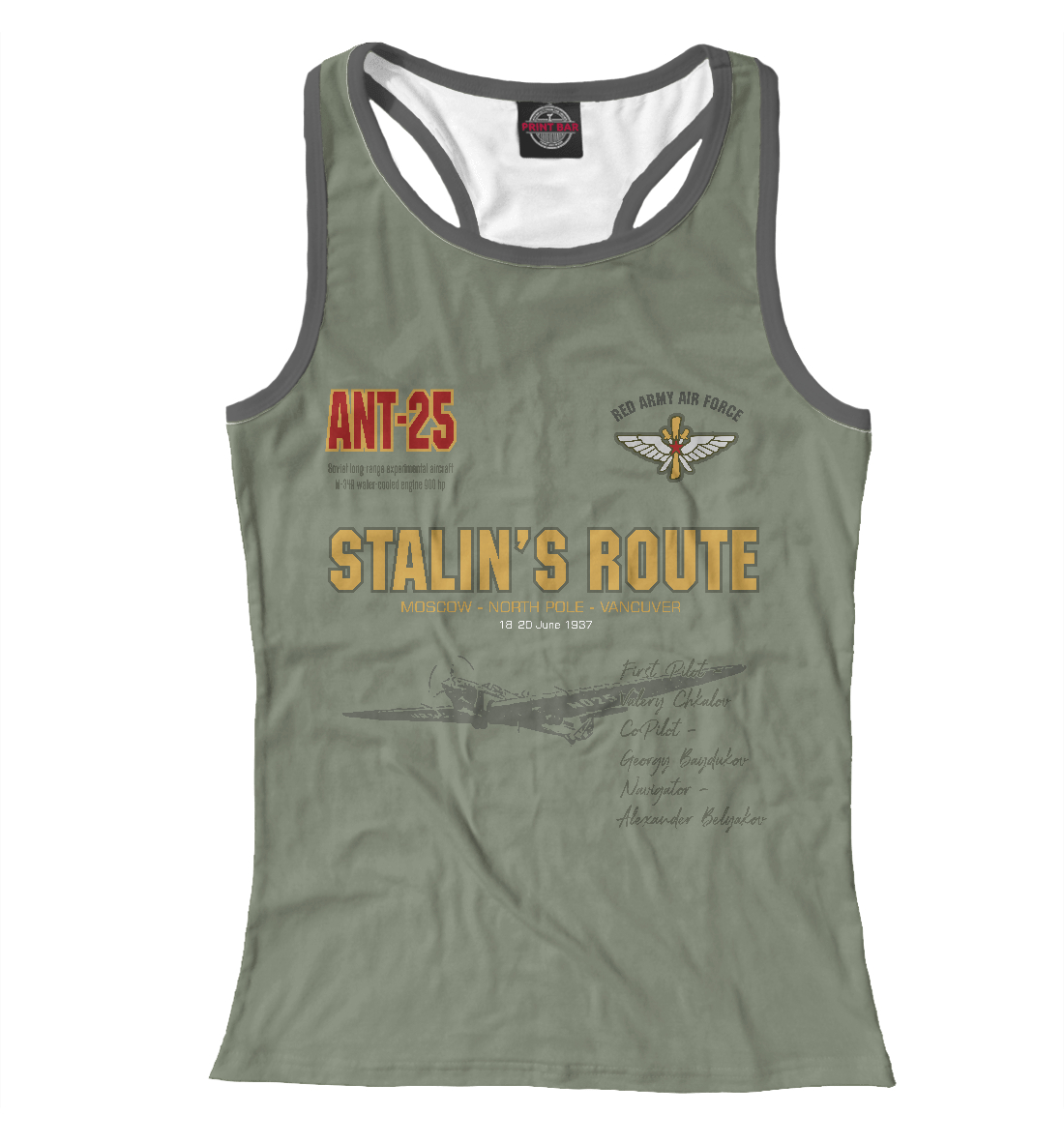 Женская майка-борцовка с принтом «Сталинский маршрут (Ант-25)»