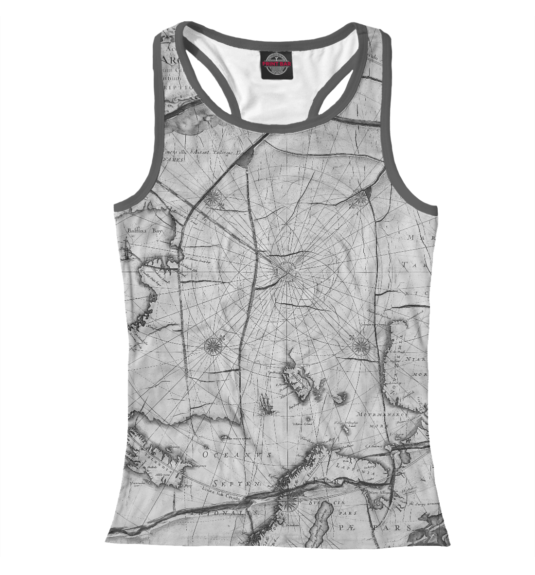 Женская майка-борцовка с принтом «Старинная карта- фреска на стене»