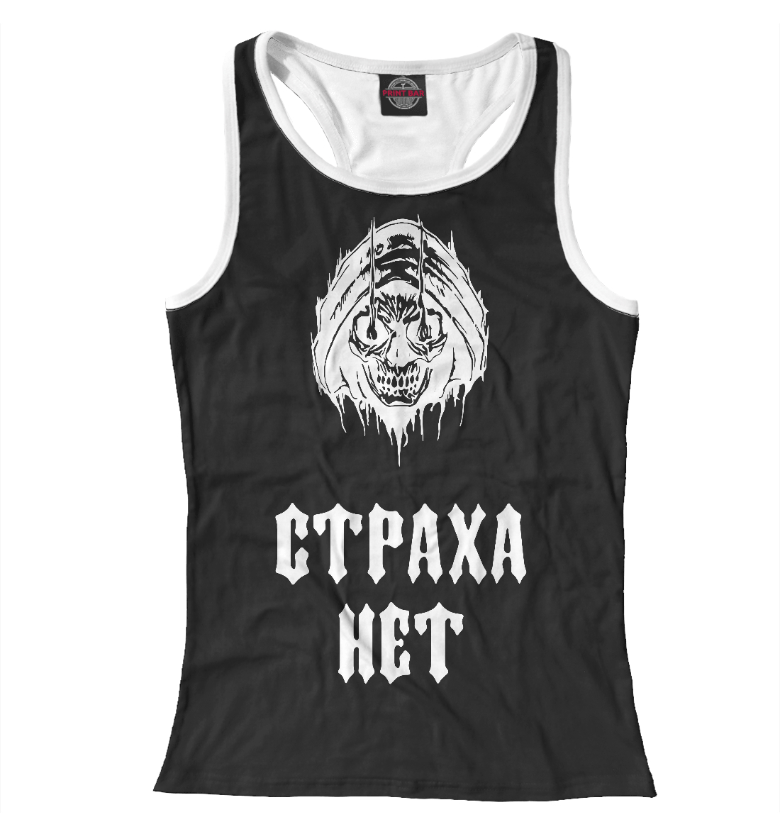 Женская майка-борцовка с принтом «Страха нет (черный фон)»