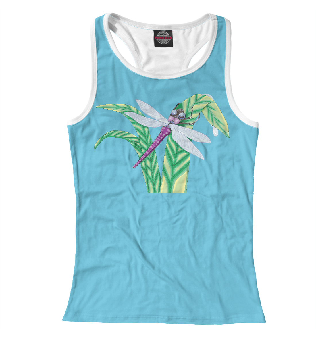 Женская майка-борцовка с принтом «Стрекоза на травинке»