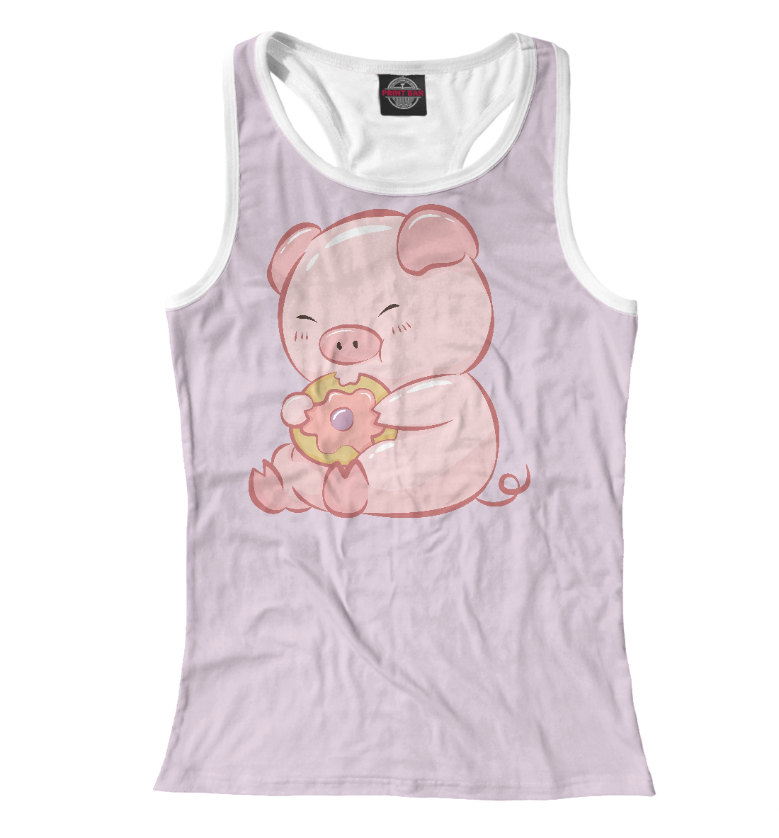 Женская майка-борцовка с принтом «Свинка с пончиком»