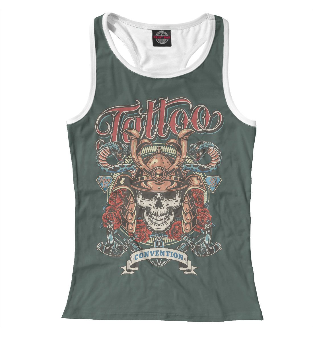 Женская майка-борцовка с принтом «Тату самурай»