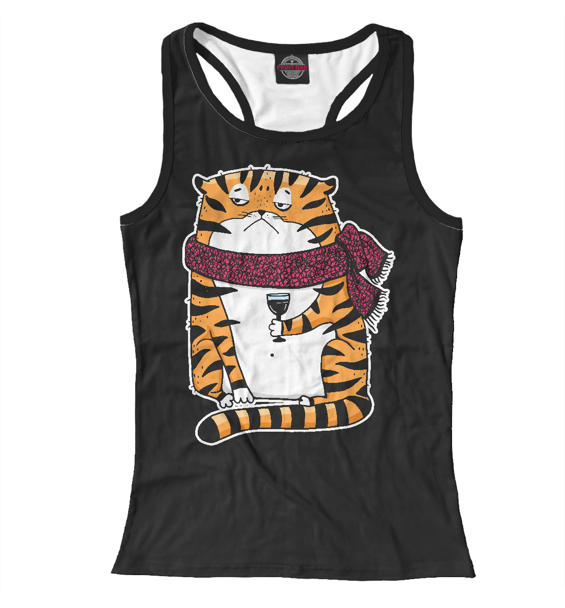 Женская майка-борцовка с принтом «Тигр с бокалом вина»