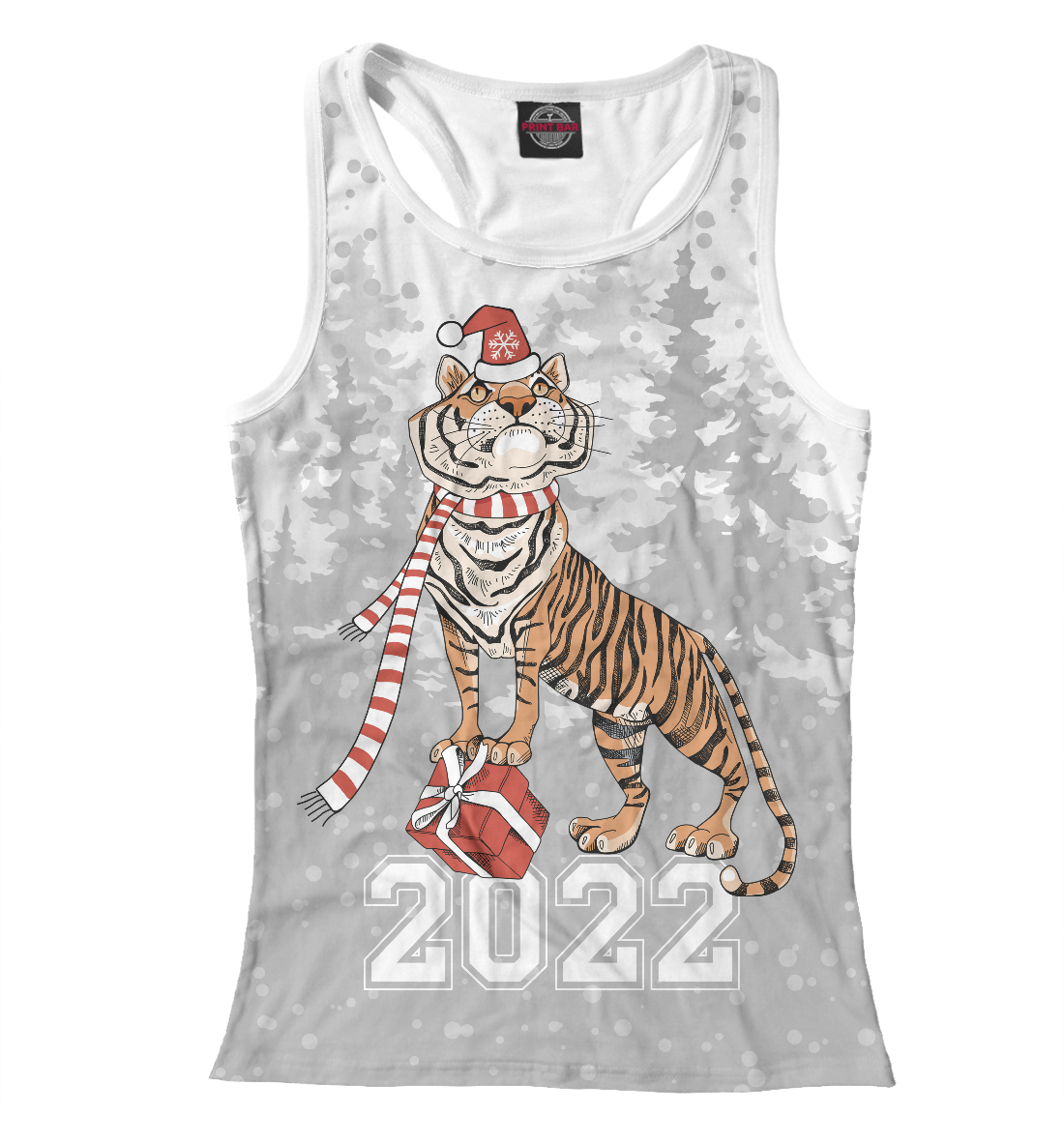 Женская майка-борцовка с принтом «Тигр с подарками»
