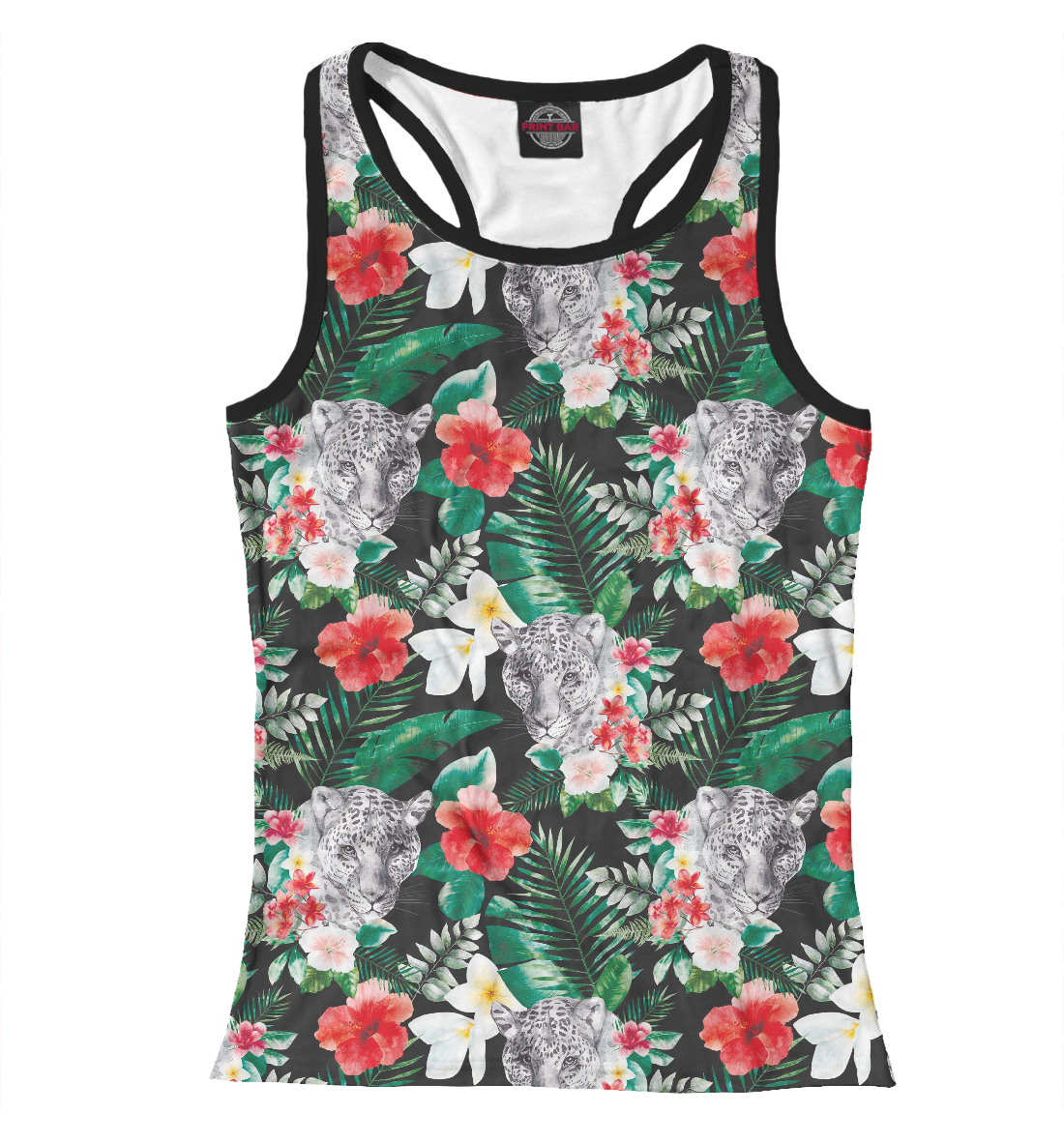 Женская майка-борцовка с принтом «Тигрица и цветы»