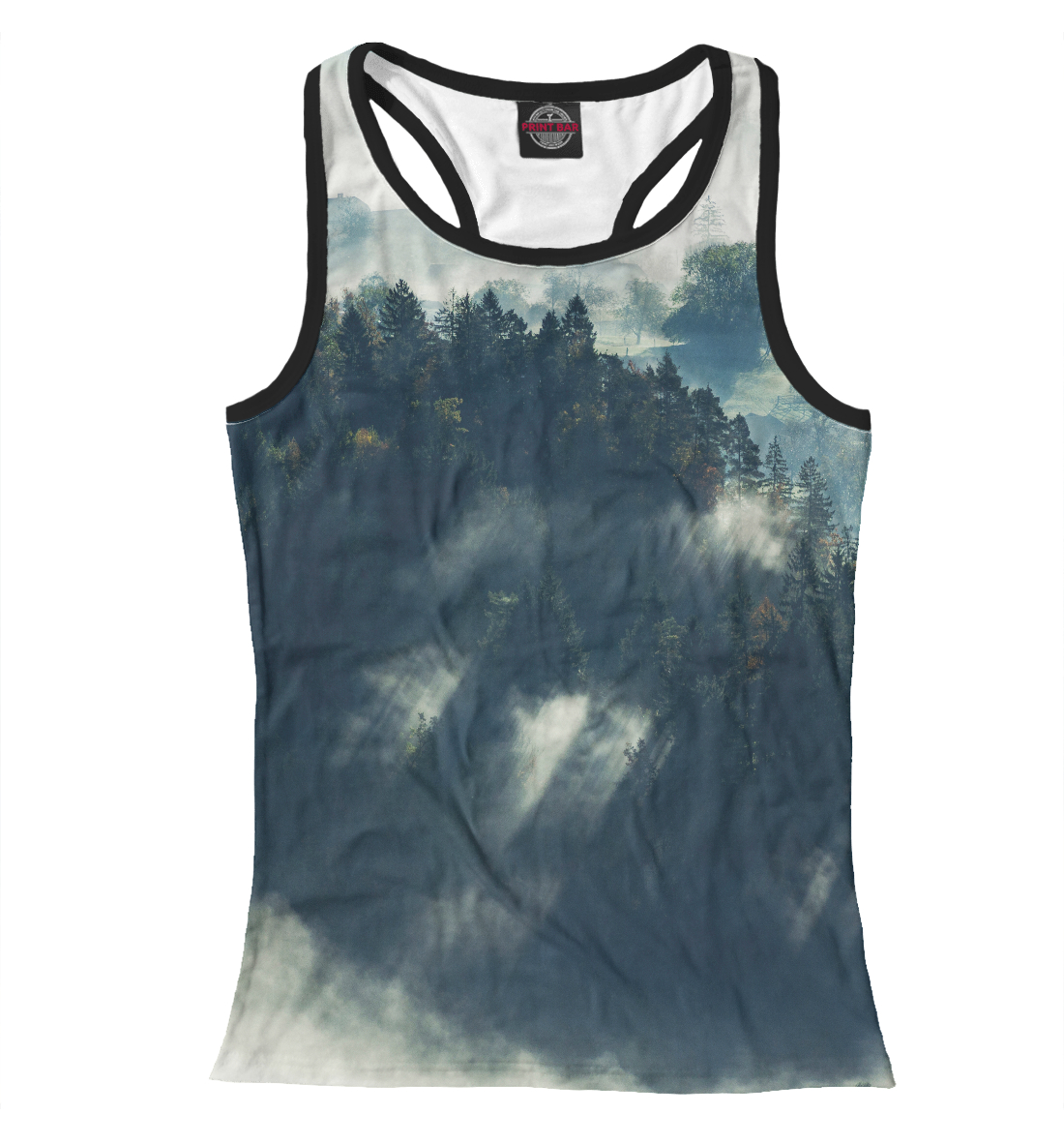 Женская майка-борцовка с принтом «Туманный лес. Лучи солнца»