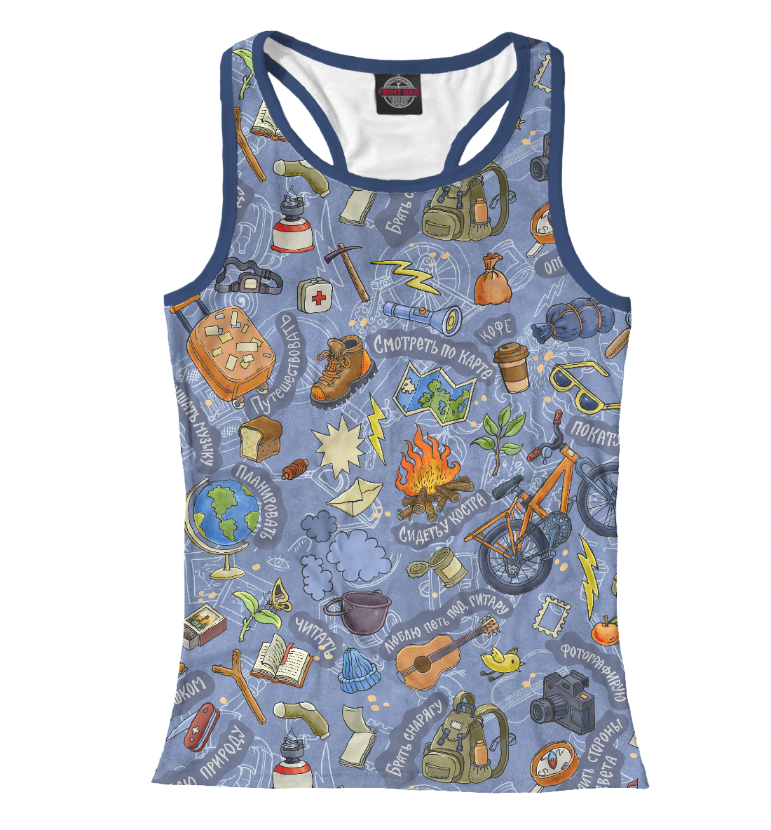 Женская майка-борцовка с принтом «Туристический паттерн цветной»