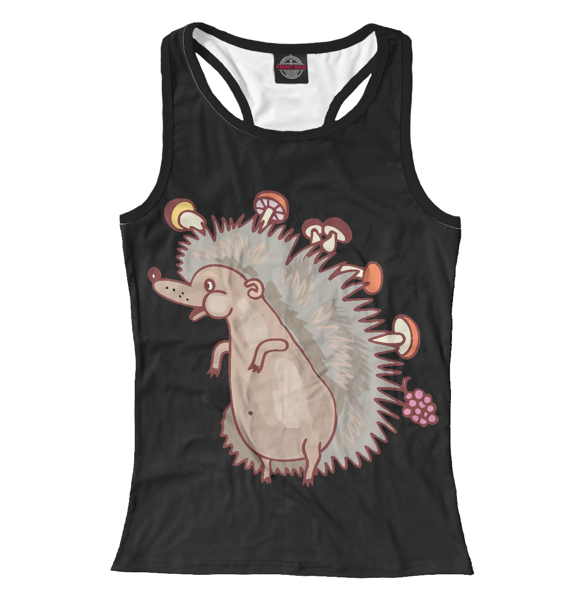 Женская майка-борцовка с принтом «Весёлый ёжик с грибами»