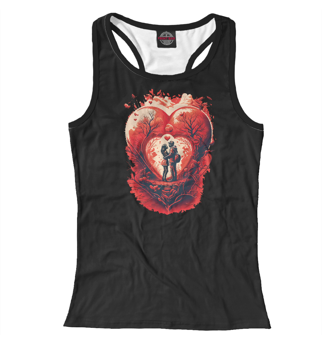 Женская майка-борцовка с принтом «Влюбленные на фоне сердца»