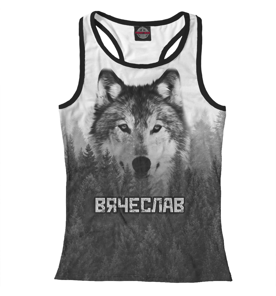 Женская майка-борцовка с принтом «Волк над лесом - Вячеслав»