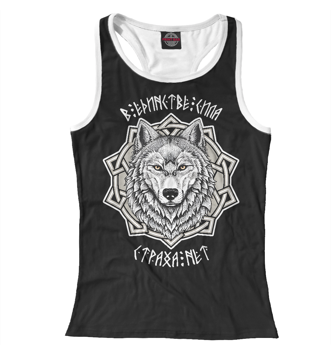 Женская майка-борцовка с принтом «Волк в круге силы / в единстве сила»