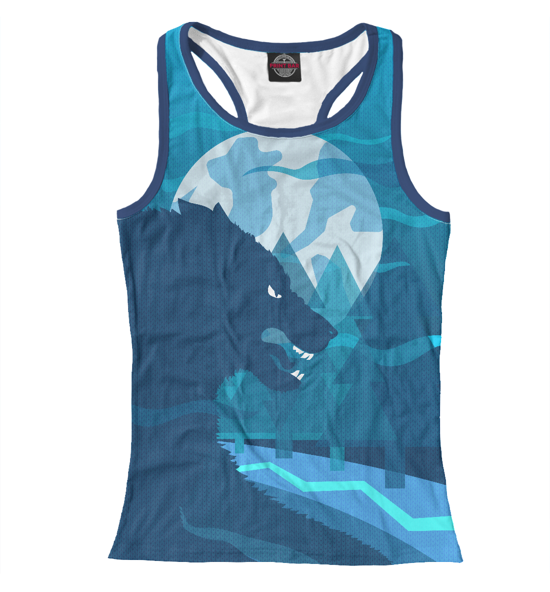 Женская майка-борцовка с принтом «Волк в лесу под луной»