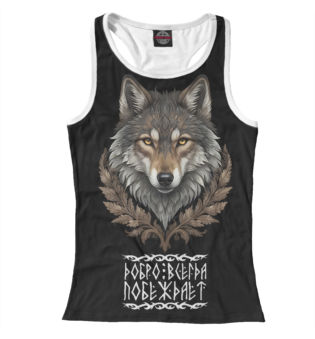 Женская майка-борцовка с принтом «Волк в венце победителя - победа добра»