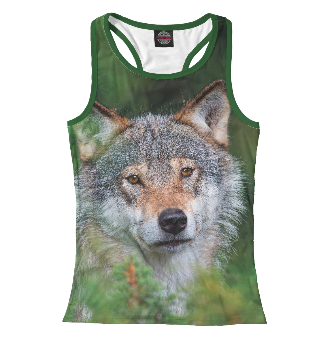 Женская майка-борцовка с принтом «Волк в зеленом лесу»