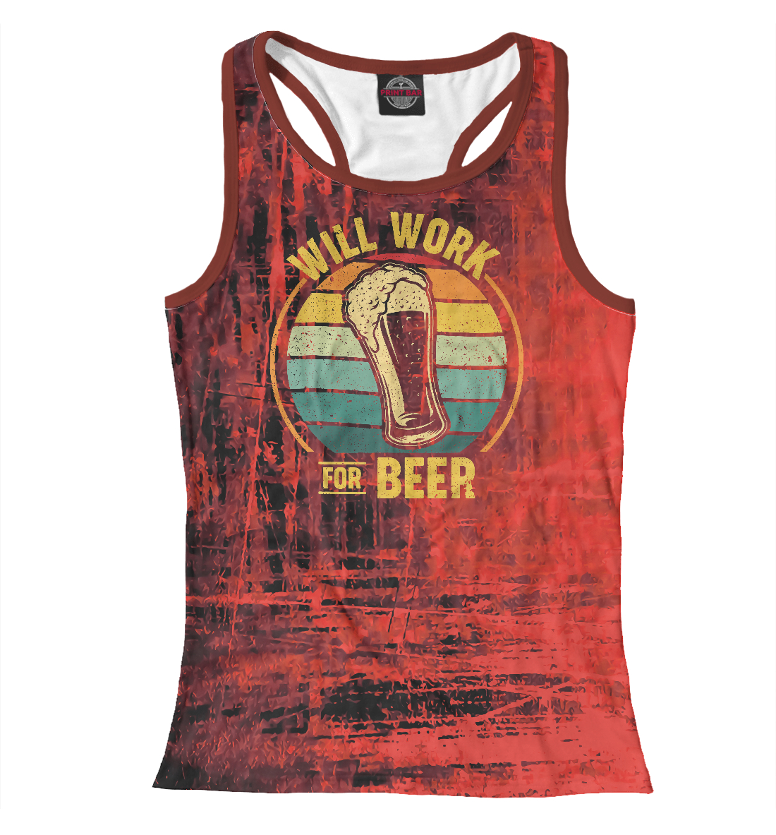 Женская майка-борцовка с принтом «Will Work For Beer»