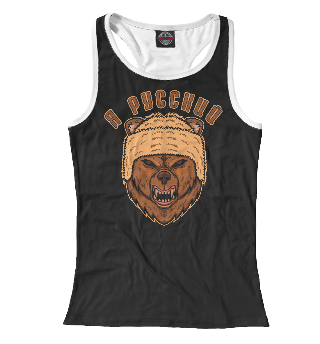Женская майка-борцовка с принтом «Я РУССКИЙ (МЕДВЕДЬ)»