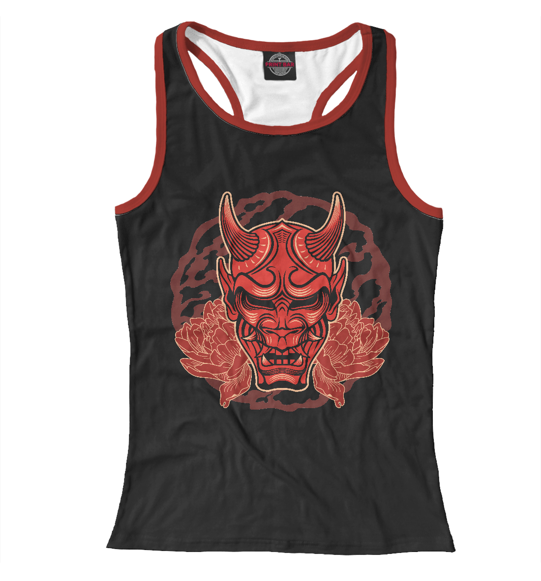 Женская майка-борцовка с принтом «Японская маска Хання с пионами»