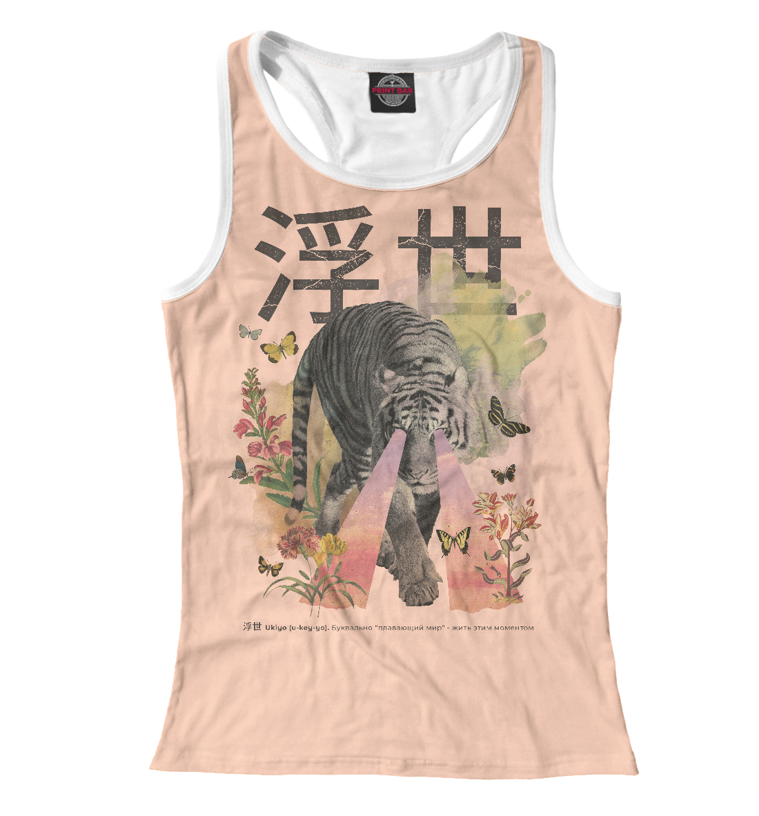 Женская майка-борцовка с принтом «Японский Тигр в стиле Укиё»