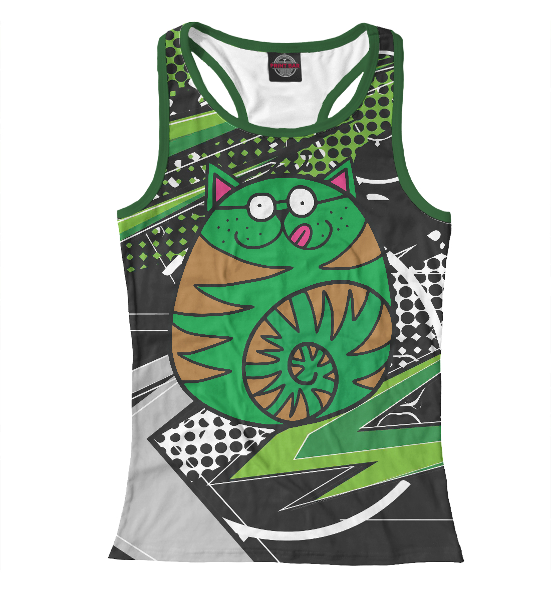 Женская майка-борцовка с принтом «Зеленый круглый кот»