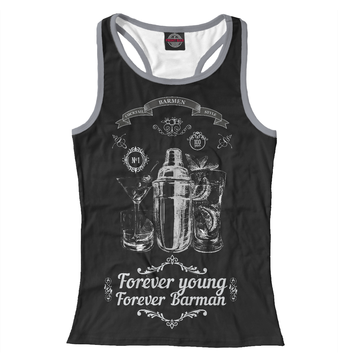 Женская майка-борцовка с принтом «Forever young, forever Barman»