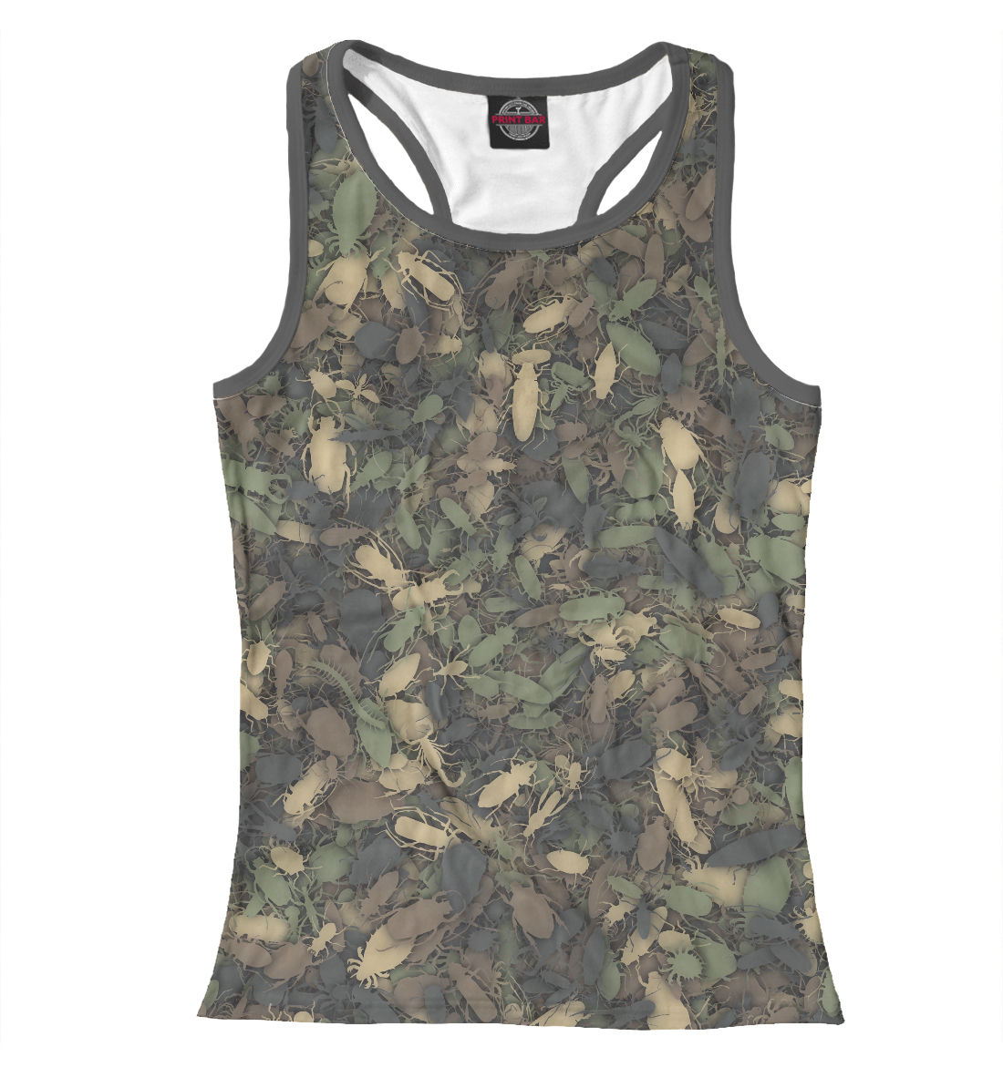 Женская майка-борцовка с принтом «Камуфляж с насекомыми»