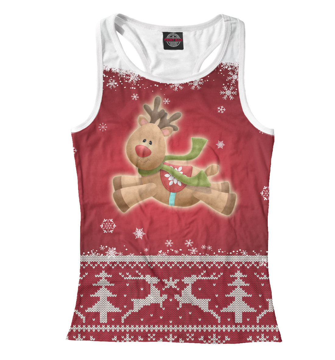 Женская майка-борцовка с принтом «Новогодний олень»