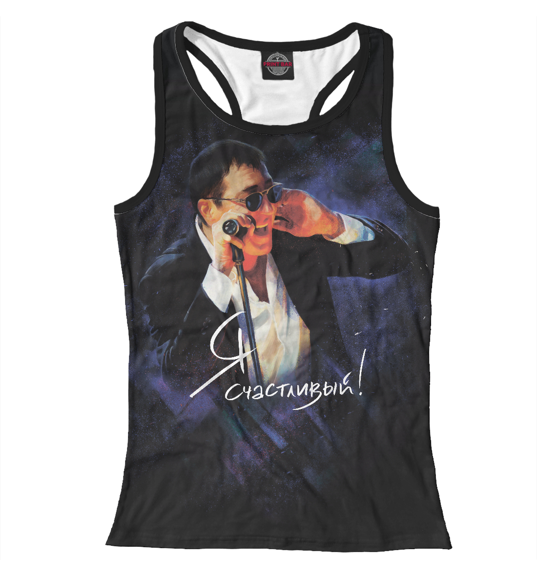Женская майка-борцовка с принтом «Я счастливый. Лепс.»