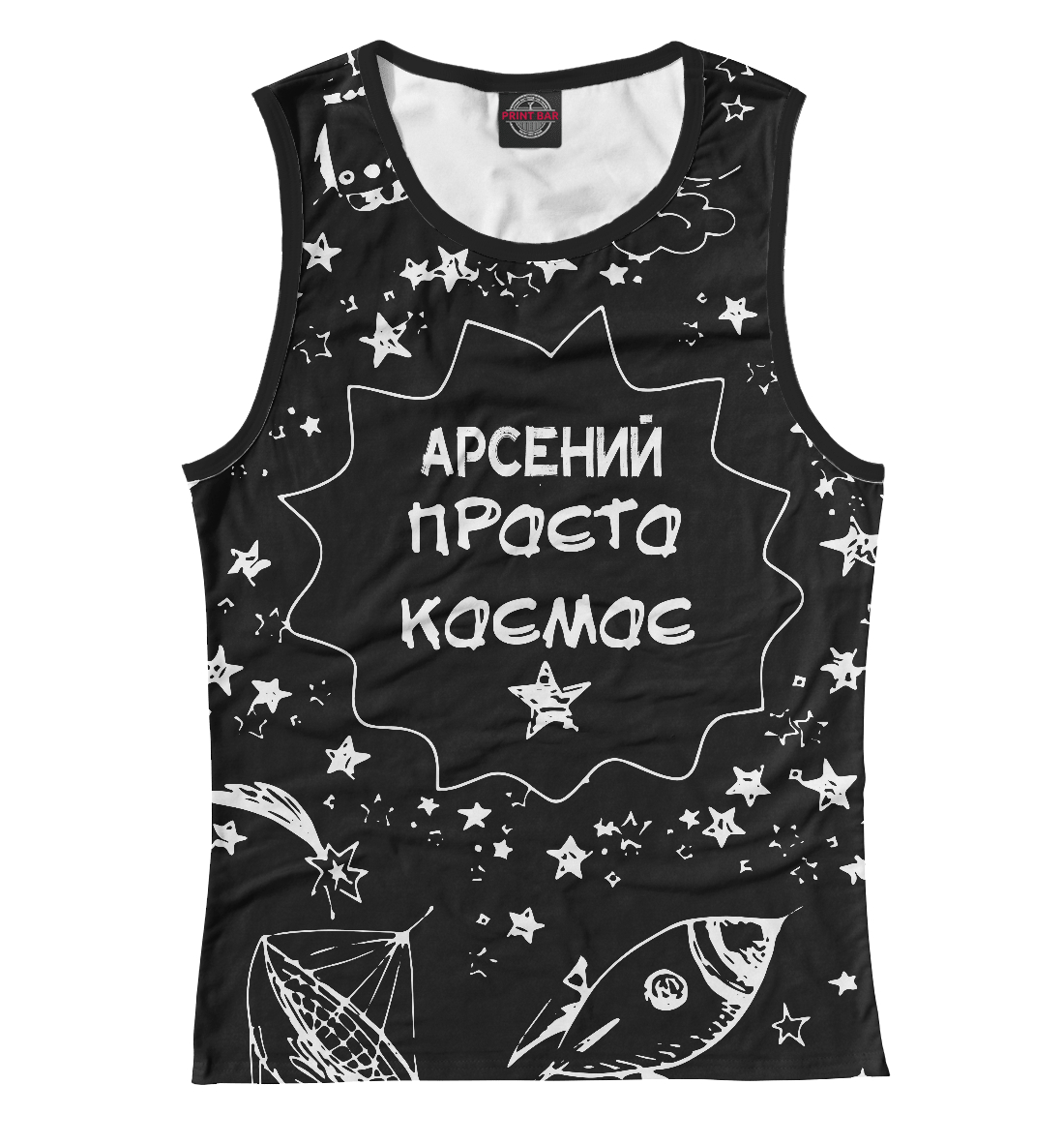 Женская майка с принтом «АРСЕНИЙ КОСМОС»